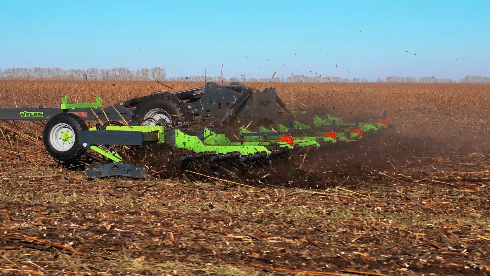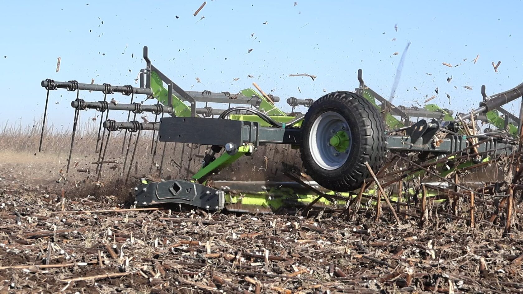 Максимальная скорость агрегата равна 25 км/ч, что позволяет иметь потенциальную производительность до 30 га/час! При этом благодаря поверхностной работе мы создаем минимальное тяговое сопротивление. По итогу агрегат является настоящим прорывом, позволяя выполнить мульчирование растительных остатков с минимальными временными и топливными затратами